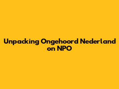 Unpacking Ongehoord Nederland On NPO