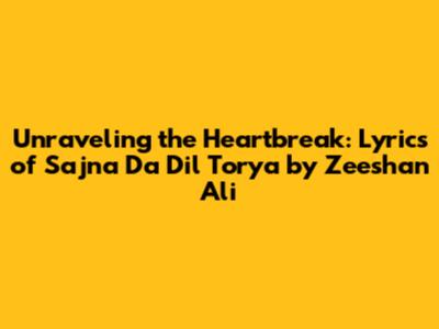 Unraveling The Heartbreak: Lyrics Of 'Sajna Da Dil Torya' By Zeeshan Ali