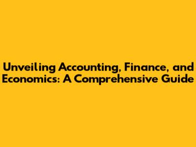 Unveiling Accounting, Finance, And Economics: A Comprehensive Guide