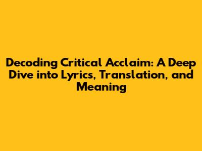 Unveiling 'Critical Acclaim': Lyrics, Translation, And Meaning