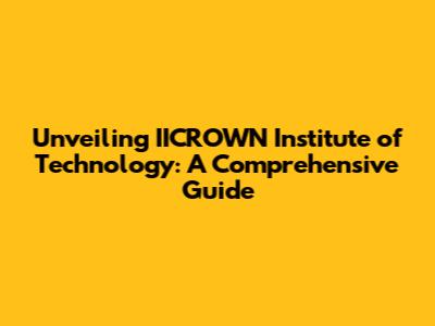 Unveiling IICROWN Institute Of Technology: A Comprehensive Guide