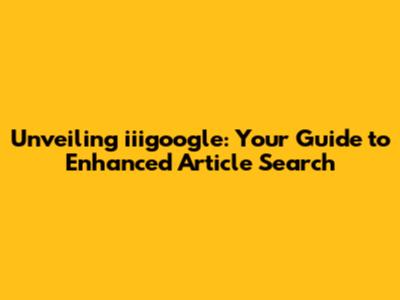 Unveiling Iiigoogle: Your Guide To Enhanced Article Search