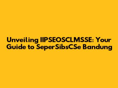 Unveiling IIPSEOSCLMSSE: Your Guide To SeperSibsCSe Bandung