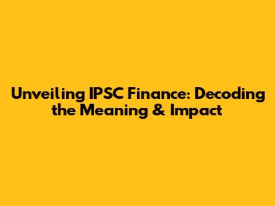 Unveiling IPSC Finance: Decoding The Meaning & Impact