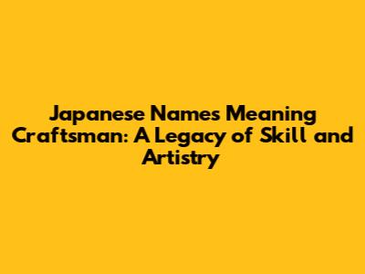 Unveiling Japanese Names: Craftsman's Legacy