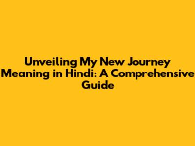 Unveiling 'My New Journey' Meaning In Hindi: A Comprehensive Guide