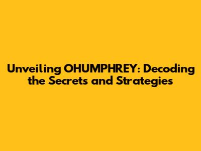 Unveiling OHUMPHREY: Decoding The Secrets And Strategies