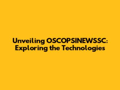Unveiling OSCOPSINEWSSC: Exploring The Technologies