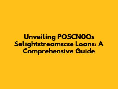 Unveiling POSCN0O's Selightstreamscse Loans: A Comprehensive Guide
