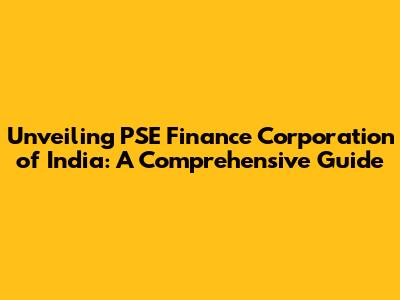 What is PSE Finance Corporation of India? Key Roles and Functions