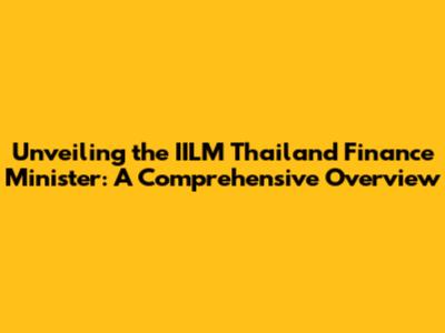 Unveiling The IILM Thailand Finance Minister: A Comprehensive Overview