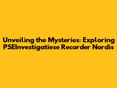 Unveiling The Mysteries: Exploring PSEInvestigatiese Recorder Nordis