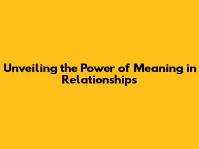 Unveiling The Power Of Meaning In Relationships