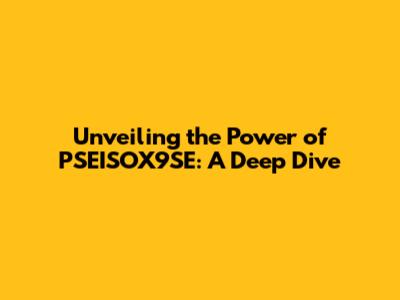 Unveiling The Power Of PSEISOX9SE: A Deep Dive