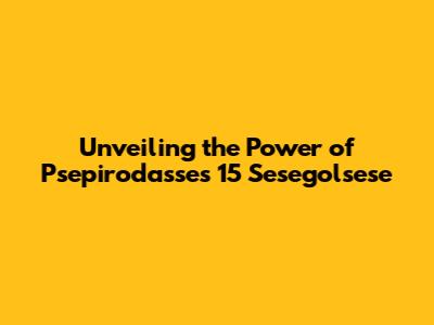 Unveiling The Power Of Psepirodasse's 15 Sesegolsese