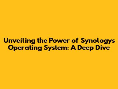 Unveiling The Power Of Synology's Operating System: A Deep Dive