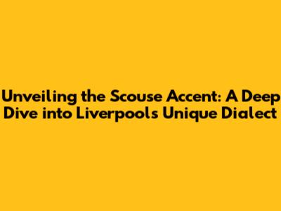 Unveiling The Scouse Accent: A Deep Dive Into Liverpool's Unique Dialect