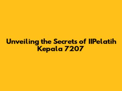 Unveiling The Secrets Of IIPelatih Kepala 7207