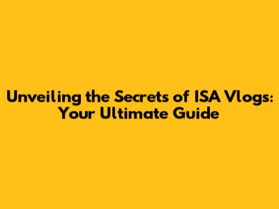 Unveiling The Secrets Of ISA Vlogs: Your Ultimate Guide