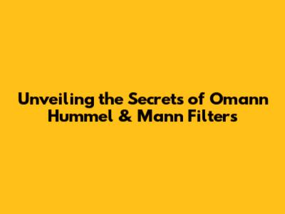 Unveiling The Secrets Of Omann Hummel & Mann Filters