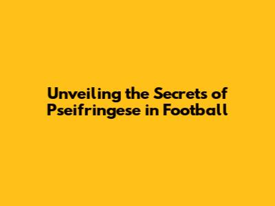 Unveiling The Secrets Of 'Pseifringese' In Football