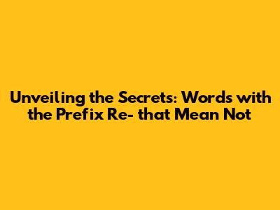 Unveiling The Secrets: Words With The Prefix 'Re-' That Mean 'Not'