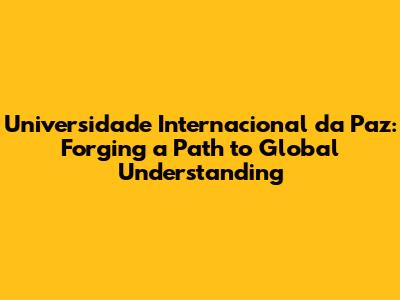 Unveiling The Universidade Internacional Da Paz: A Pathway To Global Harmony