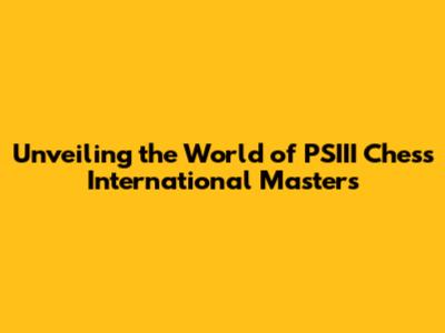 Unveiling The World Of PSIII Chess International Masters