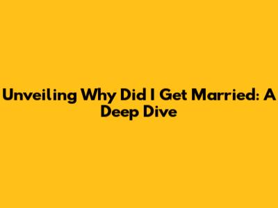 Unveiling 'Why Did I Get Married': A Deep Dive