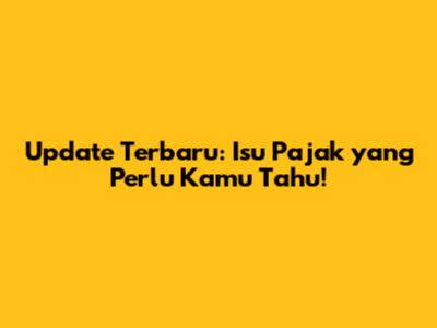 Update Terbaru: Isu Pajak Yang Perlu Kamu Tahu!