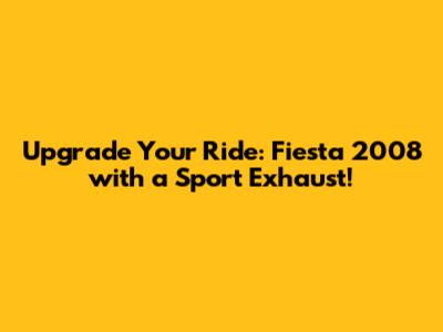 Upgrade Your Ride: Fiesta 2008 With A Sport Exhaust!