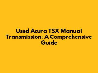 Used Acura TSX Manual Transmission: A Comprehensive Guide