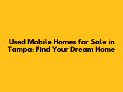 Looking for used mobile homes for sale in Tampa? You've come to the right place! Tampa, Florida, offers a vibrant lifestyle with sunny weather, beautiful beaches, and a thriving community. If you're searching for an affordable housing option in this desirable location, exploring the market for used mobile homes can be an excellent choice. In this guide, we'll walk you through everything you need to know about finding the perfect used mobile home in Tampa, from understanding the market to navigating the buying process.