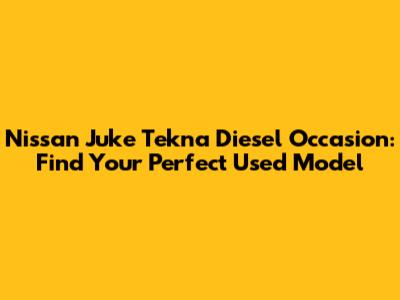 By following these tips, you can increase your chances of finding a nissan juke tekna diesel occasion that fits your budget and meets your needs. Remember, knowledge is power, so do your research and be prepared to negotiate.