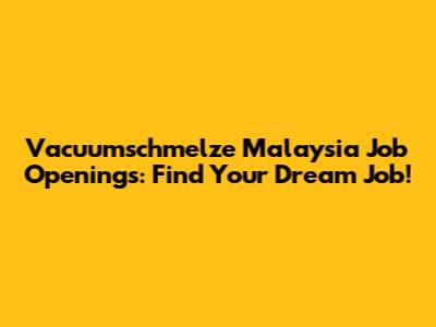 Vacuumschmelze Malaysia Job Openings: Find Your Dream Job!