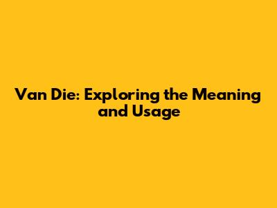 Van Die: Exploring The Meaning And Usage