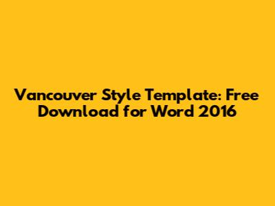 Vancouver Style Template: Free Download For Word 2016