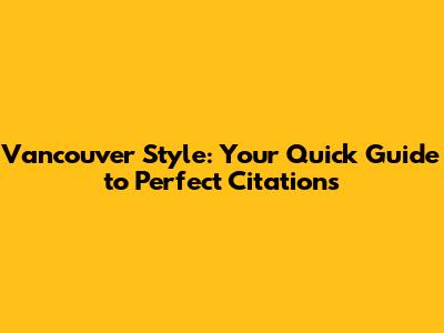 Vancouver Style: Your Quick Guide To Perfect Citations