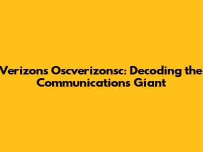 Verizon's Oscverizonsc: What You Need To Know