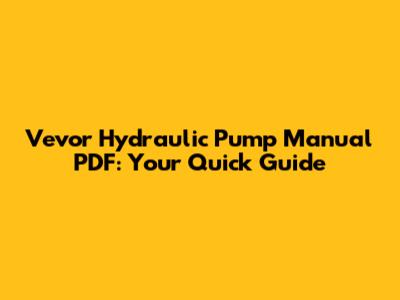 Vevor Hydraulic Pump Manual PDF: Your Quick Guide