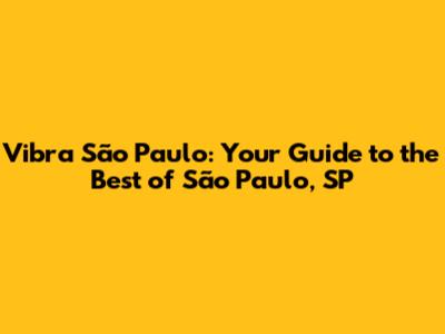 Vibra São Paulo: Your Guide To The Best Of São Paulo, SP