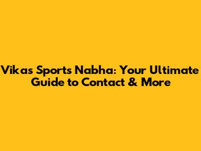 Vikas Sports Nabha: Your Ultimate Guide To Contact & More