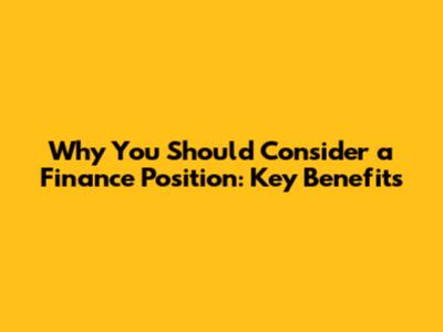 Why You Should Consider A Finance Position: Key Benefits