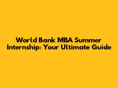 World Bank MBA Summer Internship: Your Guide