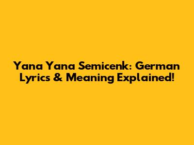 Yana Yana Semicenk: German Lyrics & Meaning Explained!
