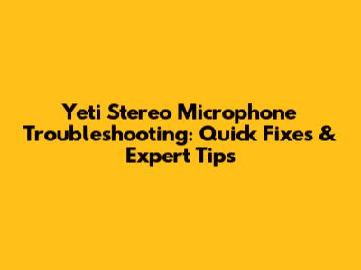 Yeti Stereo Microphone Troubleshooting: Quick Fixes & Expert Tips