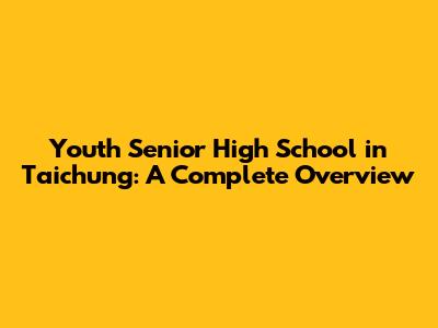 Youth High School In Taichung: A Complete Overview