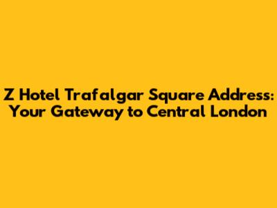 Hey guys! Planning a trip to London and looking for a super central spot? Then you've probably heard of The Z Hotel Trafalgar Square. Its prime location makes it a popular choice, and the first thing everyone wants to know is: where exactly is it? Let's dive into the specifics of the Z Hotel Trafalgar Square address and why it's such a fantastic base for exploring the city. This hotel is strategically positioned, offering unparalleled access to London's most iconic landmarks, vibrant cultural attractions, and bustling entertainment venues. Imagine stepping out of your hotel and being just a stone's throw away from Trafalgar Square, the National Gallery, and the vibrant theater district. The convenience of this location extends beyond sightseeing; with excellent transport links nearby, you can effortlessly navigate the city and discover hidden gems in every corner. Whether you're a first-time visitor or a seasoned traveler, the Z Hotel Trafalgar Square places you right in the heart of the action, ensuring an unforgettable London experience. The area surrounding the hotel is brimming with an eclectic mix of dining options, from cozy cafes to world-class restaurants, catering to every palate and preference. Shopaholics will be delighted by the proximity to major shopping destinations, while history buffs can immerse themselves in the rich heritage of nearby historical sites. The hotel's central location also means you're never far from London's famous parks, providing a tranquil escape from the urban hustle and bustle. With its unbeatable location and comfortable accommodations, the Z Hotel Trafalgar Square is the perfect choice for anyone looking to make the most of their London adventure.
