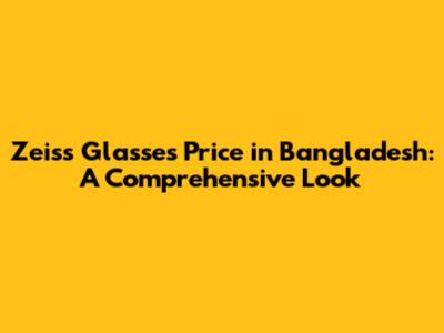Zeiss Glasses Price In Bangladesh: A Comprehensive Look