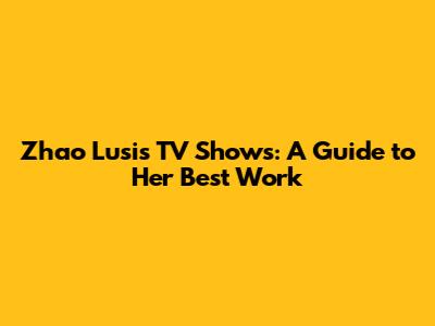 Zhao Lusi's TV Shows: A Guide To Her Best Work